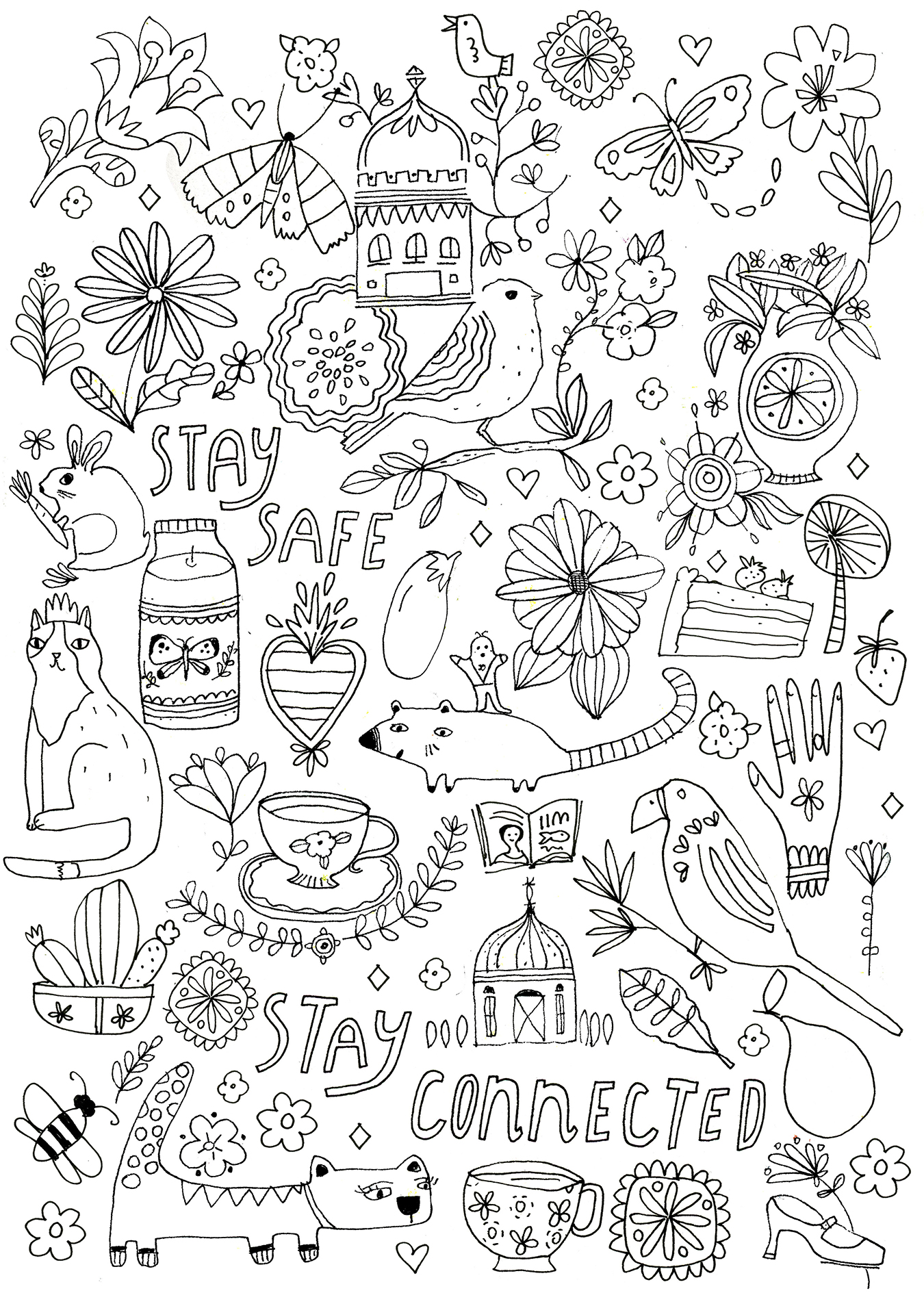 So, over the next couple of weeks we’ll be sharing some comforting coloring pages, made specially for the situation in which we all find ourselves now.