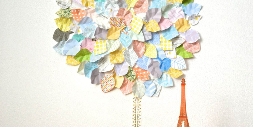 It therefore seemed like a fun idea to do something with paper sheets, but I wasn’t sure exactly what. In my experience, a good idea naturally comes to mind when I’m busy doing something else, so as I was staring out the window at the trees and their bare branches, I suddenly saw them in full bloom.