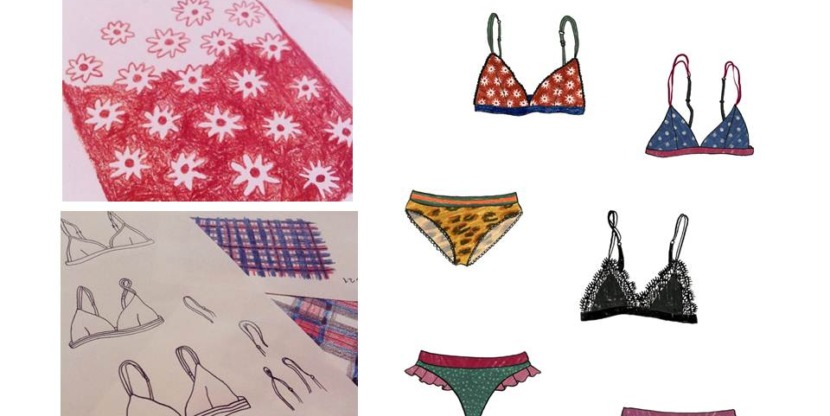 How exciting, my second blog already! This week I’d like to show you a very thrilling project: my collaboration with LoveStories, the new brand of lingerie by stylist Marloes Hoedeman. My first job for LoveStories was making illustrations for the big inspiration book. I illustrated sets of underwear based on the technical drawings Marloes would send me. LoveStories is funky and fresh. I wanted to hold on to that and chose to work with water colors and ink.